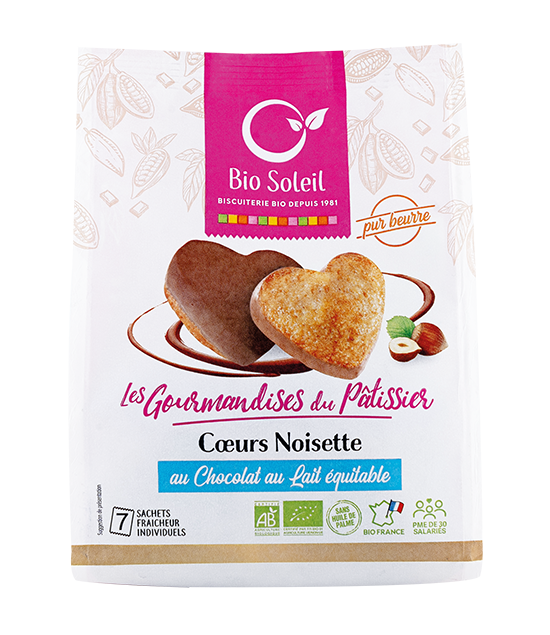 Une recette de coeurs ultra gourmande avec des noisettes torréfiées par nos pâtissiers et un nappage au chocolat au lait équitable
